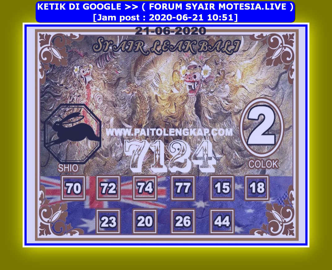 Forum Code Syair Hk Pak Tuntung 10 Juni 2021. Forum syair sydney minggu 6 juni 2021 hari ini kode syair sydney toto kumpulan lengkap gambar kode syair sydney jitu yang lengkap pada saat ini sangat berpengaruh penting oleh para pemain master togel sdy untuk menghasilkan kombinasi angka akurat paling jitu sydney hari ini di togelwap Forum Syair Sidney. Live Result SDY yang hendak kami tampilakan akan automatis sehari-harinya dengan tepat waktu yang hendak mulai berputar-putar sekitaran jam 13.30 WIB dan akan memberi hasil Prize 1 pada jam 13.50 WIB. Selain Live Draw Sdy anda juga dapat mengunjungi situs live draw hk - live draw sgp - maupun live draw cambodia yang telah kami sediakan.
